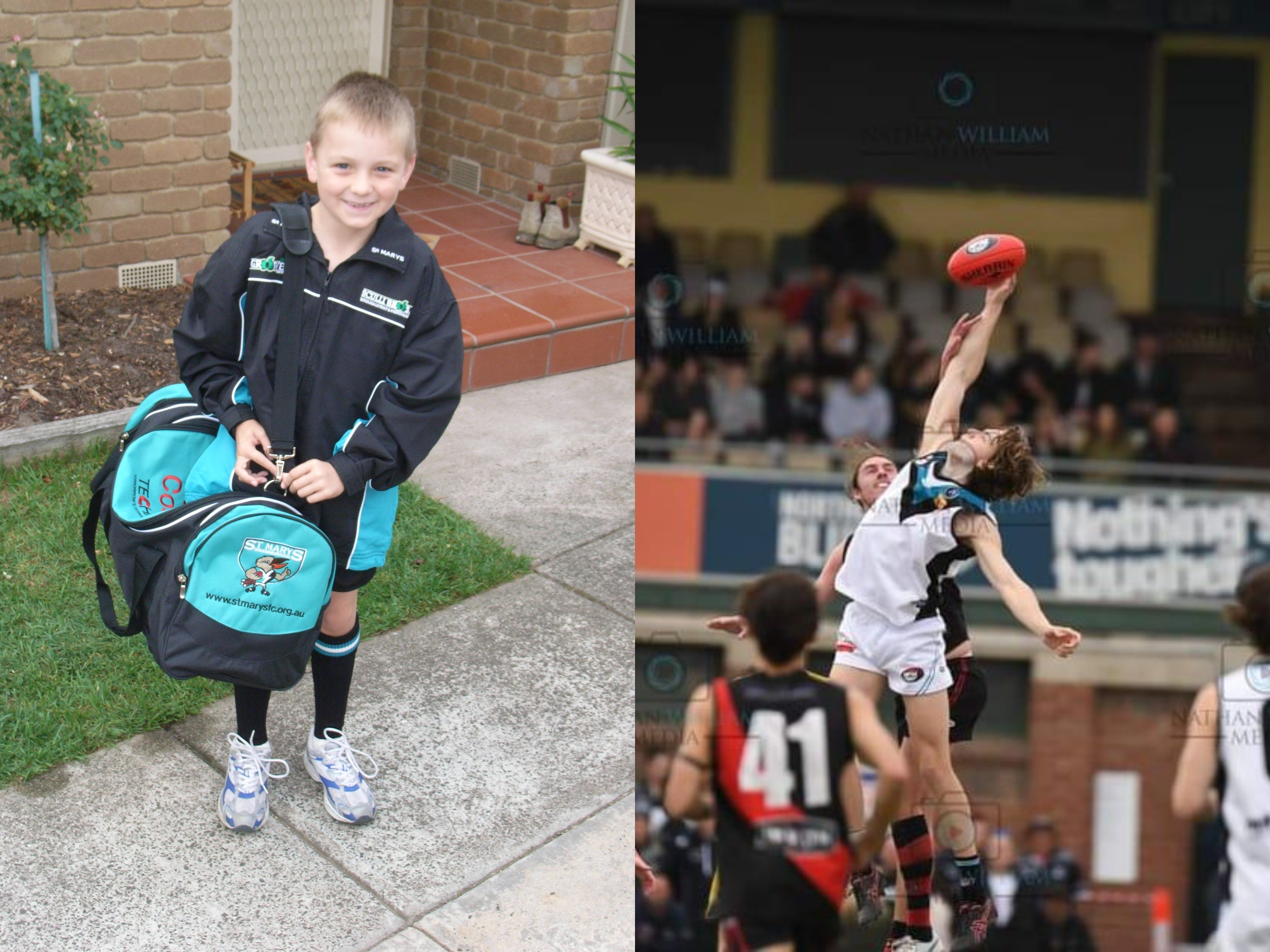 Zane Costello and Tom Hardy started their footy careers in tackers together back in 2009, with mate Jack Cicitta joining them at St Mary’s Junior Football Club in 2015.