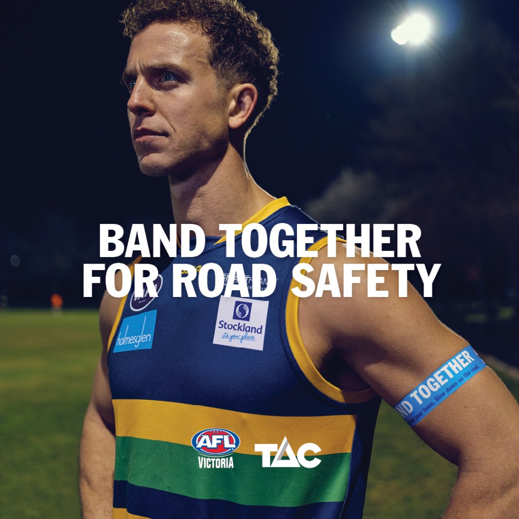 This weekend, we will again ‘band together’ to support the AFL Victoria and TAC Victoria Road Safety Round, donning blue armbands to honour the lives touched by road trauma and promote road safety in our community.