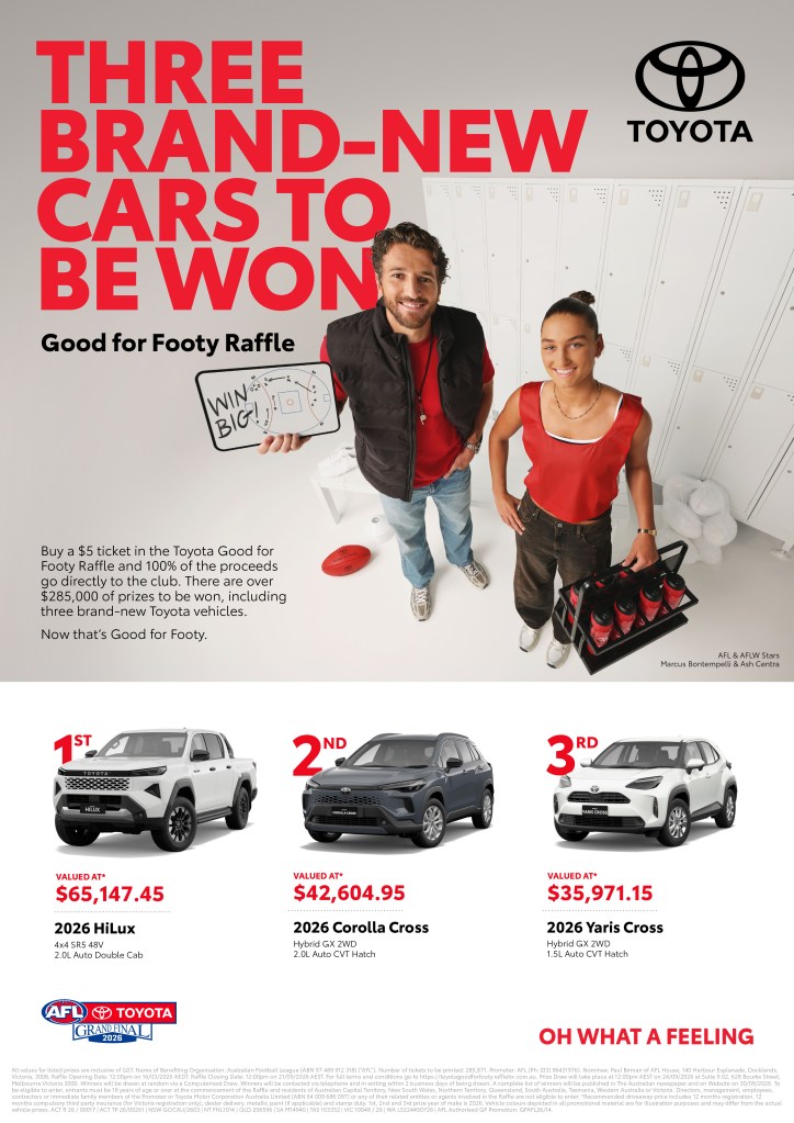 We’re excited to share that the Toyota Good for Footy Raffle is back for another year, and it’s one of the easiest (and biggest) ways to support our club.