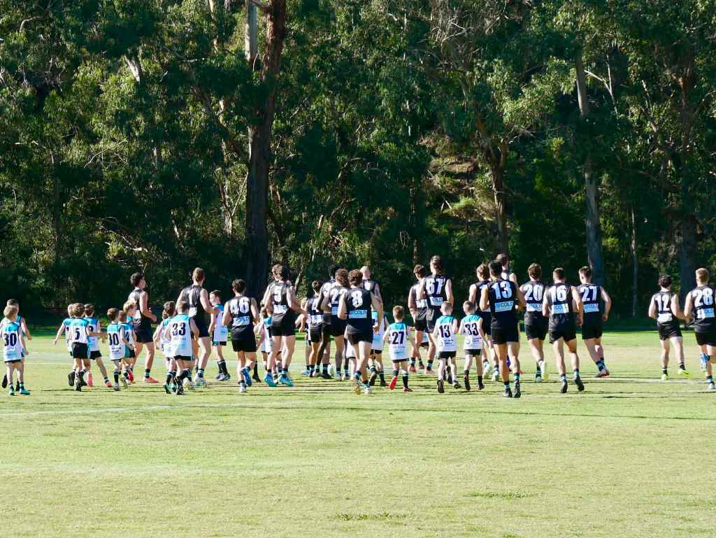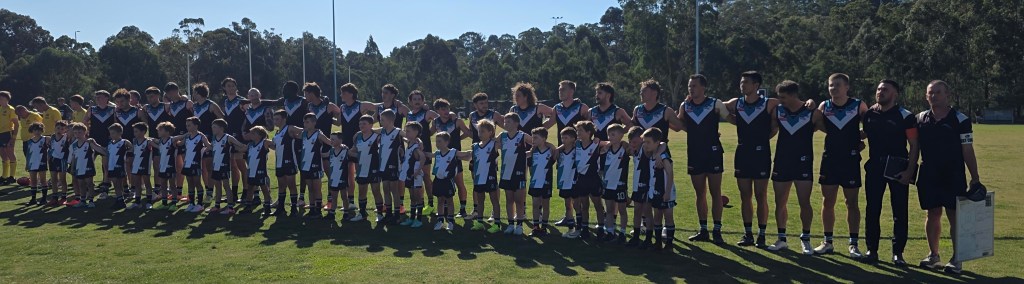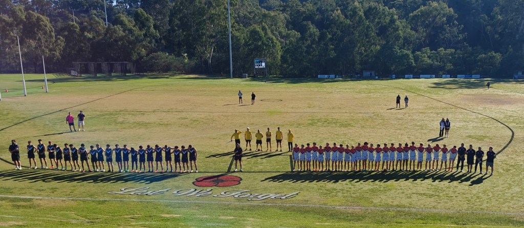 Our St Mary’s GJFC junior players stood alongside the senior men as The Last Post played ahead of the Anzac Day clash